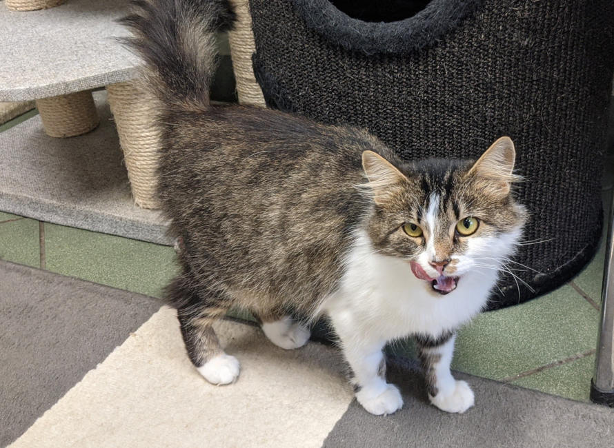 See mõnusa pikakarvalise kasukaga kiisu jõudis meile koos oma tillukese pojaga. Väikemees sai õige kähku koju ja nüüd tahaks Liana ka varjupaiga tolmu käppadelt pühkida. Liana on ise alles nooruke, vaevalt paariaastane. Ja väga-väga uudishimulik. Kassitoas ei tohi midagi toimuda nii, et kusagilt ei piiluks Liana põnev näomask. Ja noh, konserviampsu pakkumist ei lase Liana küll endast mööda minna! Ta lihtsalt kõnnib nii kaua vabatahtliku kannul, kuni midagi maitsvat pudeneb.