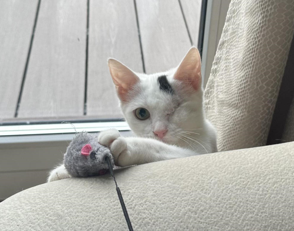 Pärl on umbes pooleaastane lõbus ning lustlik kassilaps nagu kõik temavanused. Eemaldatud silm ta elukvaliteeti kuidagi ei vähenda. Pigem vastupidi – tänu sellele on tal kogu aeg veidi põnev ja kaval ilme nagu tahaks öelda – vaata mind, ma olen nii vahva!