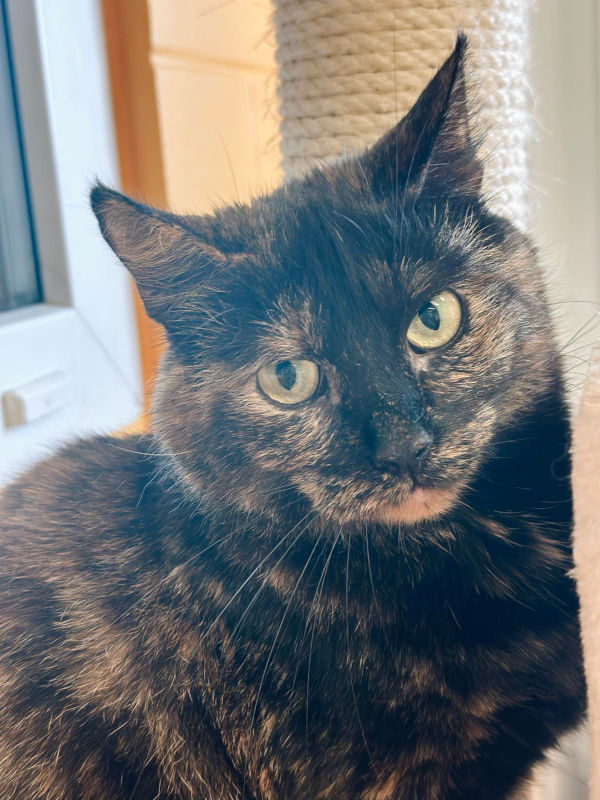 Эта черепаховая кошечка, по имени Мята, ищет свою семью, которая готова принять её такой, какая она есть. Её история, как у многих: Мята попала к нам в приют с тремя котятами. Все её малыши уже давно нашли свои дома, а она всё ещё ждёт.