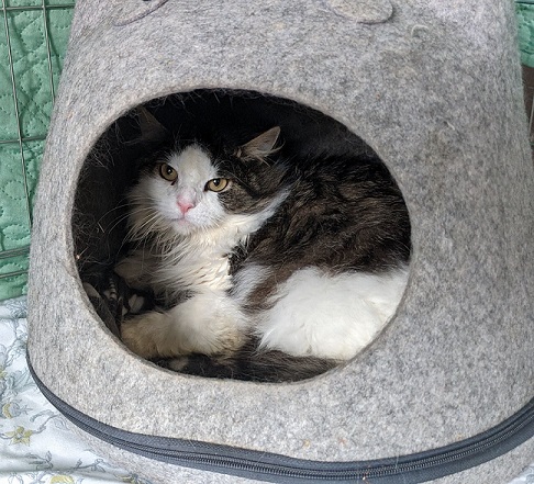 Üks selline peidetud aare meie kassitoas on eelmise aasta septembris Narvast meie juurde jõudnud haruldaselt kauni kasukaga Don Luis. Donil pole kunagi varem kodu olnud ja ilmselt on ta pidanud üsna mitu aastat omapäi tänavaelu elama. See on muutnud ta väga ettevaatlikuks ja õpetanud, et kõige ohutum on olla nii, et sind keegi ei märka. ![]()