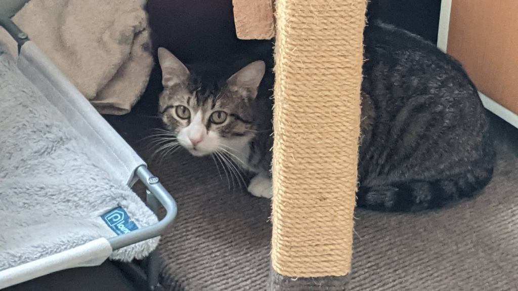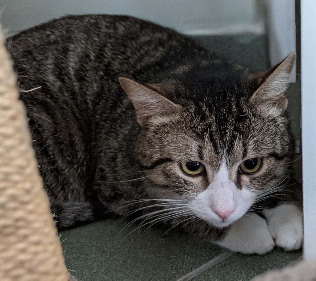 Ega siin pole midagi imestada – nooruke kiisu on pärit Viimsi tänavatel liikunud hulkurkasside seltskonnast, kus kiisut pidevalt ahistati. Mõni kiisu lihtsalt on selline allaheitlik. Samas pole ta üldse kuri ja kui vabatahtlikul õnnestub tabada ta mõnest kratsikapesast, võib talle julgel pai teha enne kui kiisu peitu lipsab. ![]()