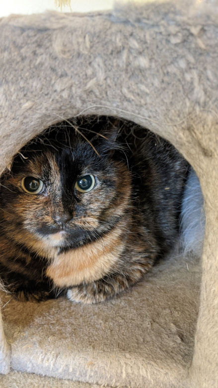 Meie esimene uustulnuk on koheva kasukaga kilpkonnakarva Estelle, kellel on rinnaesisel vahva suur oranž laik. Ja kelle mustad silmanööbid on säravad kui tähed ja ümarad kui rosinad. ![]()