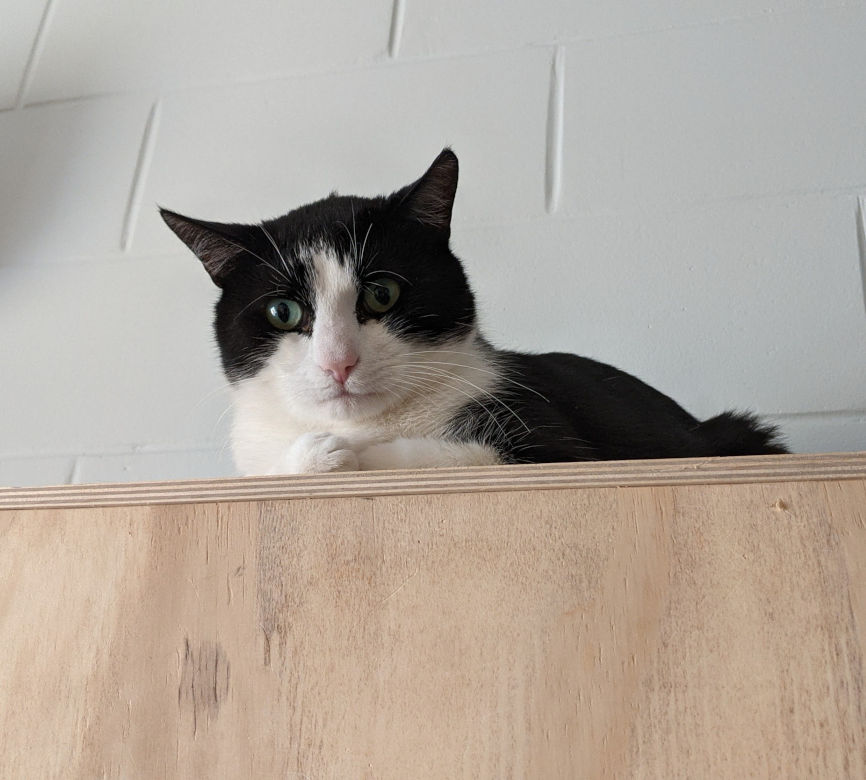 Praegu on ta veel arglik ja eelistab peituda mõnda pessa, või siis ronida kõrgemale kohale, kust on hea ümbritsevat jälgida. Aga oleme täiesti veendunud – ei lähe kuigi kaua ja see kaunis kassipoiss on täiesti koduvalmis.