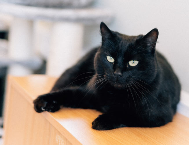 чисто чёрная кошечка, очень ласковая и общительная.