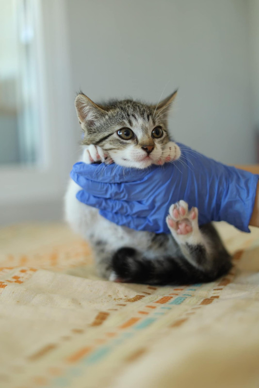 Ищет дом котенок-девочка. Малышке около двух месяцев и она попала к нам вместе с братом и сестрой, к сожалению без мамы. Мама и еще один котенок пропали.. Реези была трусишкой, но сейчас очень быстро привыкает и учится доверять. Реези живет на передержке