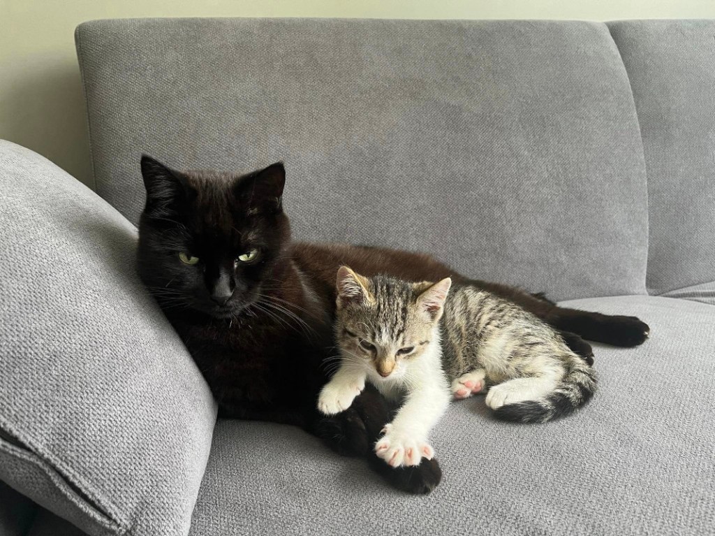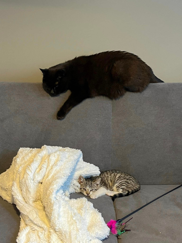 «Она в целом как обычный котенок – игривая, любопытная, любит покушать, любит моего кота – начинает мурчать когда видит. Пока еще немного пугливая, гладиться не подходит, но уже не рычит и в целом даже не шипит, но когда тянешься руками – убегает (думаю это тоже скоро пройдет). на руках – тоже начинает мурчать если продолжительно ее гладить. Ходит в лоток. В общем хороший котеночек