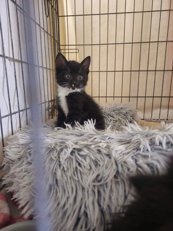 Её чёрный пушистый братик Шейди тоже в поиске своей семьи. Было бы идеально, если бы котята могли переехать в один общий дом.