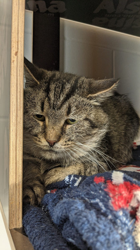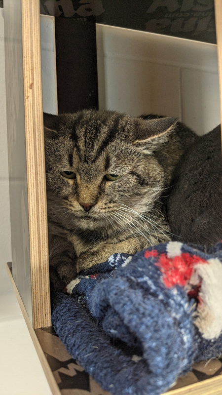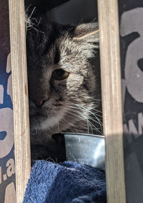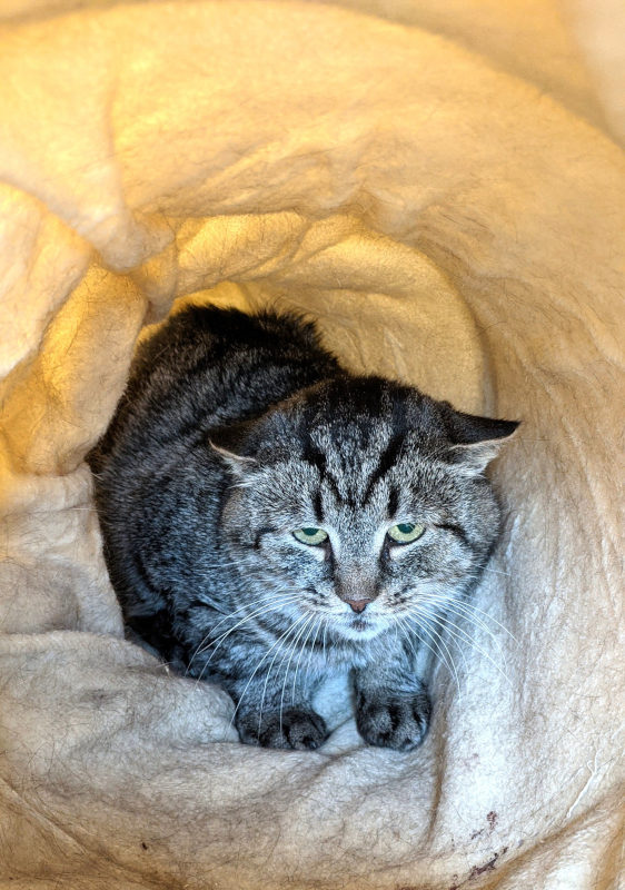 Pedro on tõsine triibik, kes püüti ühe Kohtla-Järve tööstuskompleksi territooriumilt septembri alguses. Metsik, räpane ja logiseva tervisega. Nüüd on sellest möödas pea kolm kuud ja kõik tervisehädad on Pedrol seljatatud. Aga hingehaavad paranevad väga pikkamööda. Pedro endiselt kardab inimest. Ent tasahilju ja tillukeste sammukeste haaval kogub meie kõutsikene julgust, et inimese poole vaadata ja võtta temalt mõni maiuspala. Pedro vanust me ei tea, pigem jääb see kusagile 5-6 aasta kanti. Oleme täiesti veendunud, et Pedrol pole mitte kunagi kodu olnud ja suure tõenäosusega on ta kahejalgsetelt vaid sõimu, ja ehk ka vägivalda, kogema pidanud. Nüüd, kus kiisu kõht on täis ja tervis enam ei logise, loodame nii meie kui tema, et Pedrol on parimad ajad alles ees. ![]()