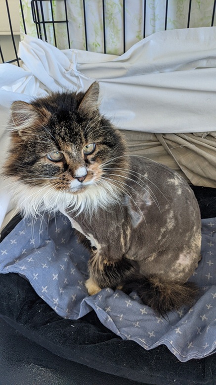 Миэль – кошка с необычным внешним видом и добрым характером. Миэль была забрана с улицы в плохом состоянии – ее шерсть была сильно повреждена (сейчас шерстку подстригли), а здоровье подорвано зимними холодами. Сейчас кошечка завершает курс антибиотиков и готовится к прививкам.