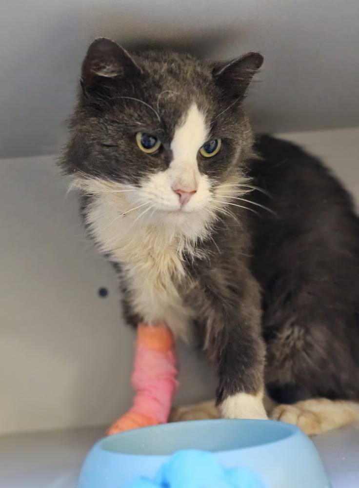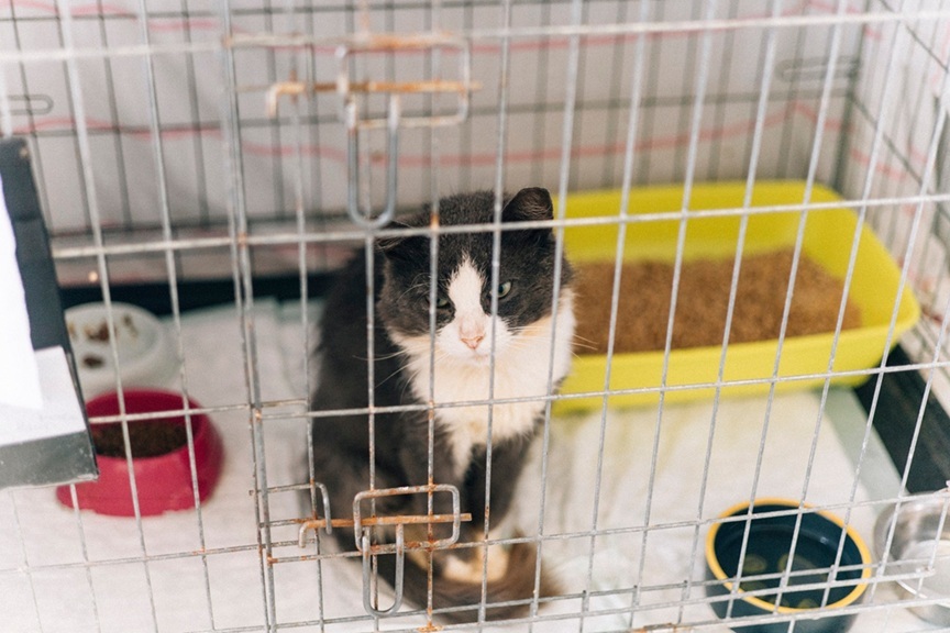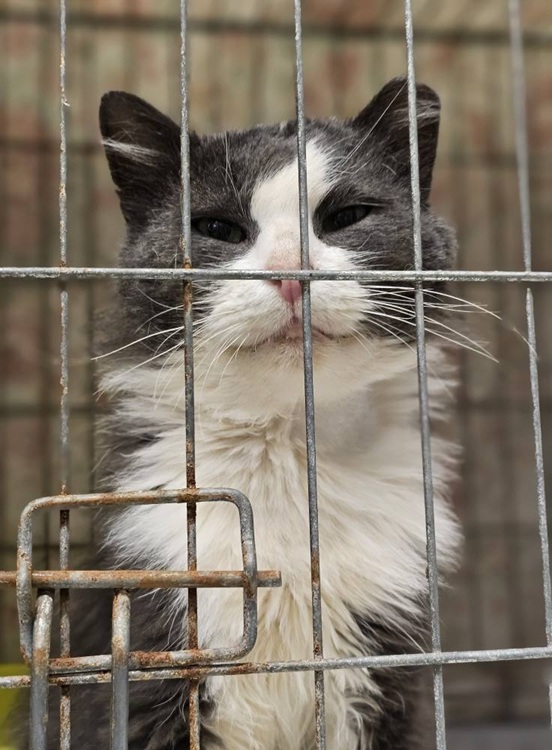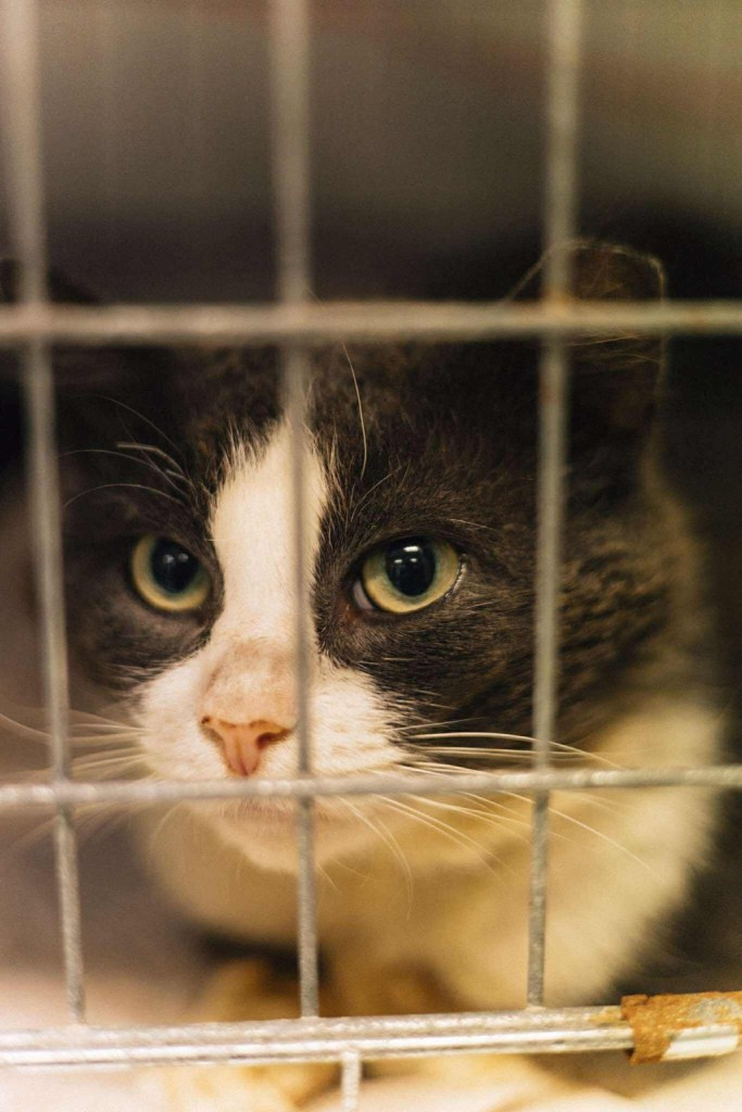 Он из тех котиков, кто очень долго лечился и поэтому вынужден был жить в клетке. Сначала у нас в карантине, потом в стационаре клиники, теперь снова у нас.
