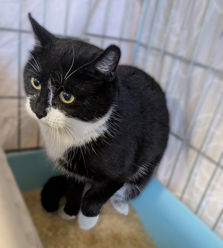 У нас готова к переезду в новый дом очаровательная черно-белая девочка Гати. К сожалению, мы не знаем её точный возраст, но ей точно нет и года.