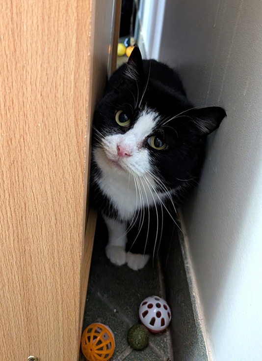 Нэнси пока осторожная, людей боится и погладить ее пока нельзя. Отлично ладит с другими кошками (идеальна в качестве второго или третьего любимца). Нэнси ждет терпеливого хозяина, который просто хочет подарить дом кошке, которая очень в этом нуждается.
