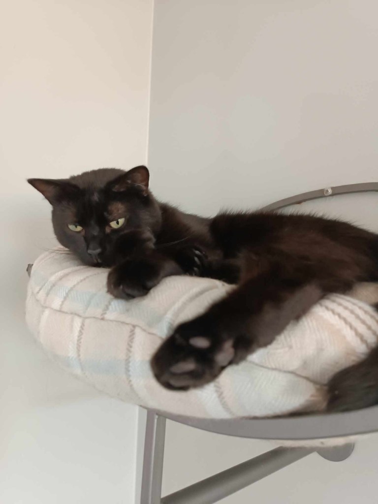 Kui Egon 2023. aasta varasügisel Narva suvilarajoonist kassituppa jõudis, oli ta väga pelglik. Need ajad on ammu möödas, paikool on Egonil kiituskirjaga lõpetatud ja musta iluduse usaldusalustel on lubatud teda ka sülle võtta. Aga siin see konks peidus ongi: Egoni sõprus tuleb välja teenida. Päris võõrad inimesed pole Egoni meelest piisavalt usaldusväärsed ja kui külalised kassituppa tulevad, eelistab Egon end pigem mõnes seinapesas mõnusalt kerra tõmmata ja oodata, kuni õhk jälle puhas on. ![]()